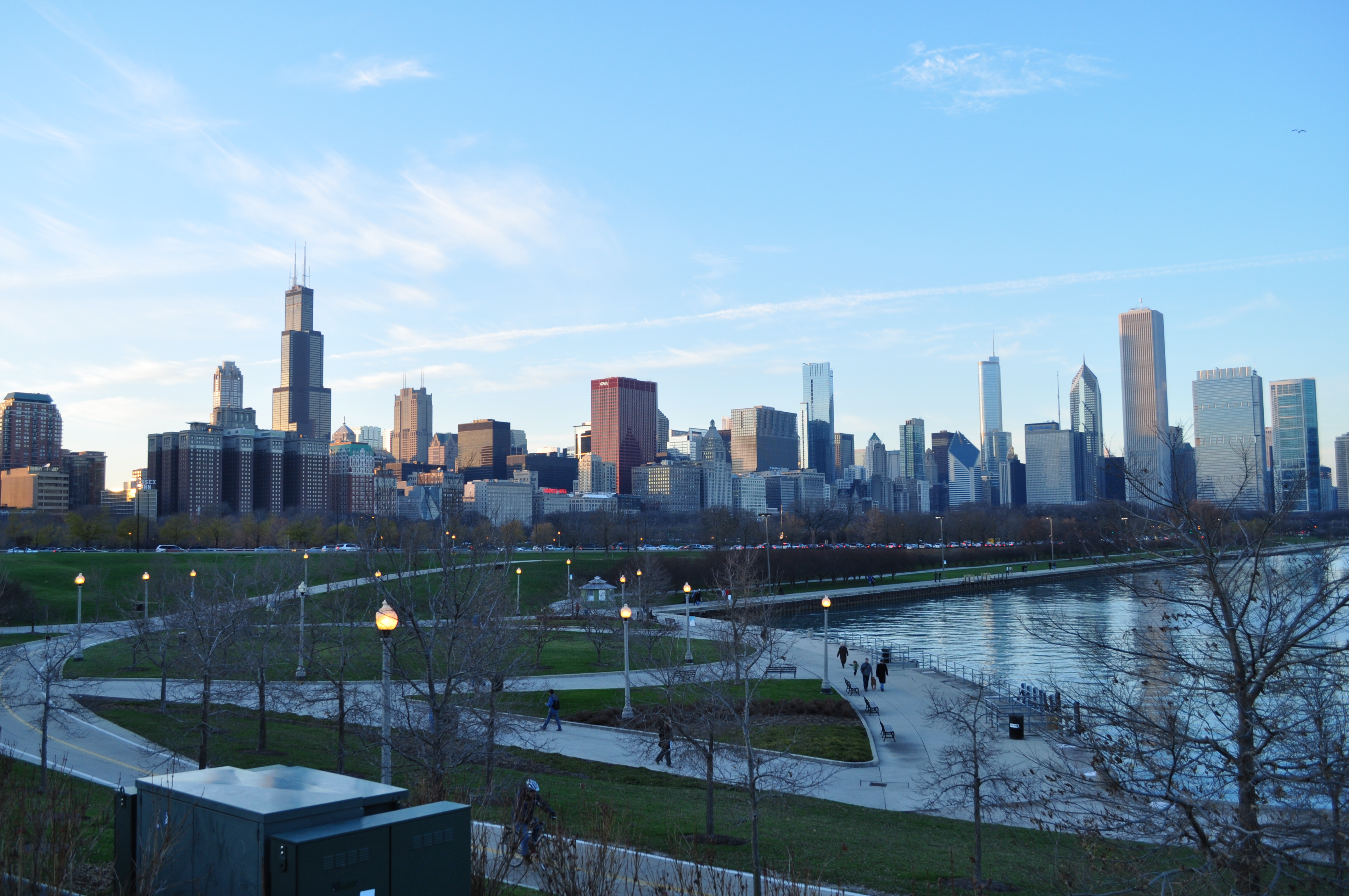 This photo was taken in the museum campus, which lies in the Southeast corner of Grant Park. The museum campus was created to transform the vicinity of the museums (Field Museum, Shedd Aquarium and Adler Planetarium) into a pedestrian-friendly park with jogging paths and biking trails.