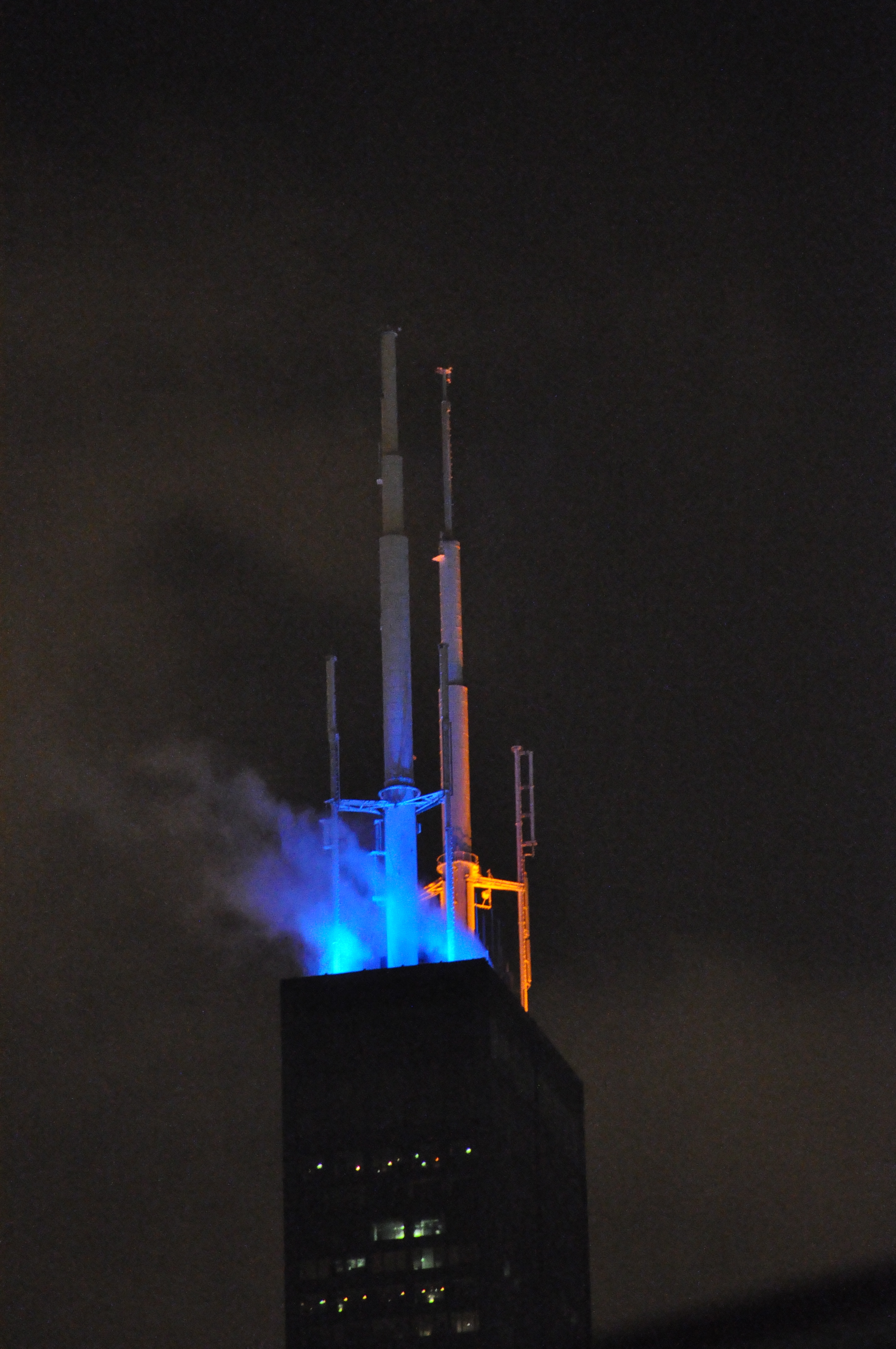 One of the things I love about the Chicago is the way the city skyline changes colors throughout the year to support a cause or a sports team. This photo was taken of the top of the Willis Tower (always known to me as the Sears Tower) when they city gleemed blue and orange for the Bears journey to the playoffs.