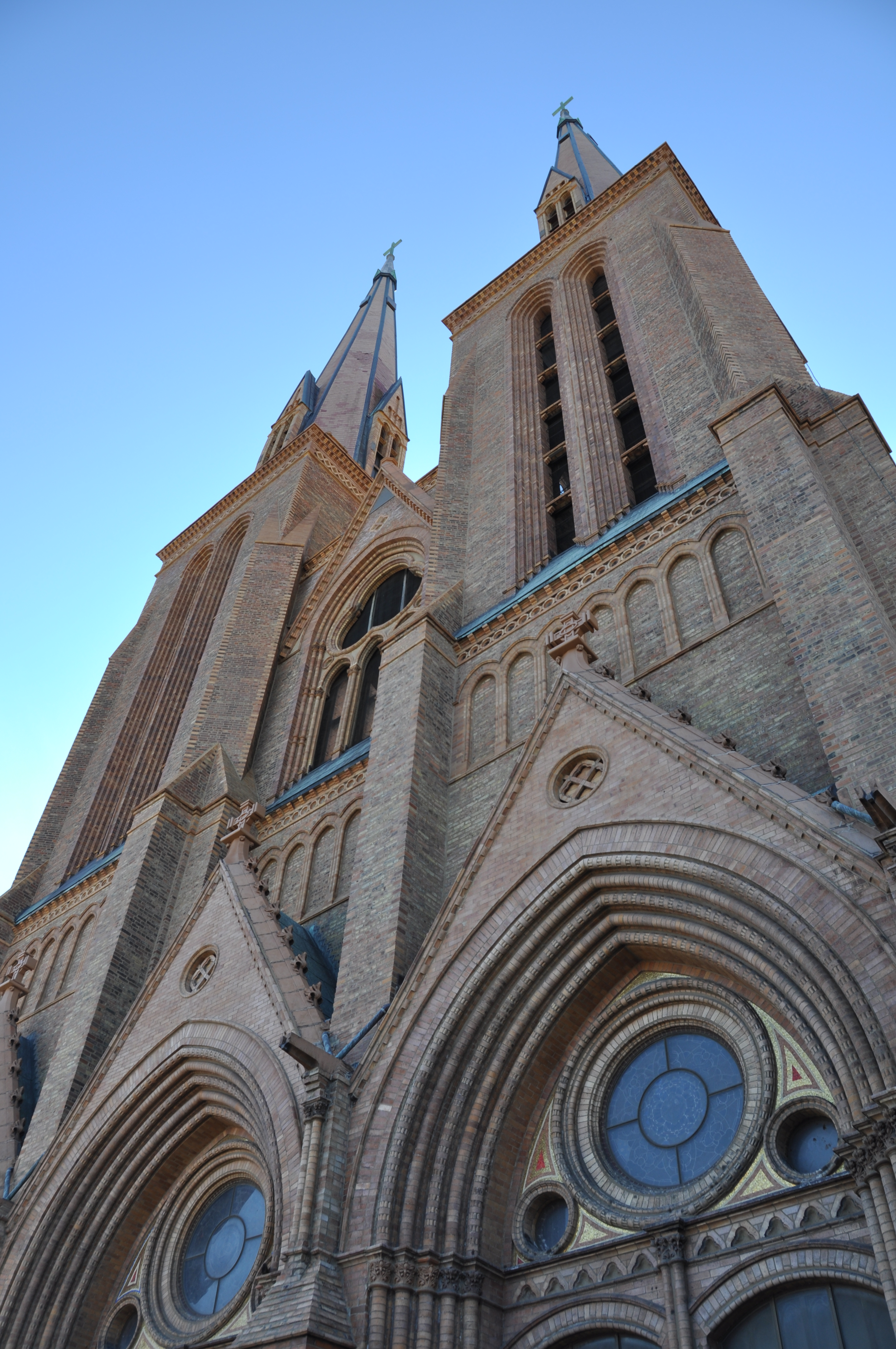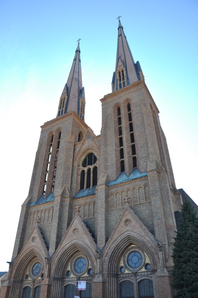 These photos were taken of the St Paul Catholic Church in Chicago. It was built by architect Henry Schlacks and was one of the first churches he built. Founded by the German community that was established in 1876, it took over 30 years in the making for this church. The first corner stone was laid in 1897 and it took another 3 years for the exterior to be completed- this being due to the fact that it was the first church of it’s kind in the country. Since no contractor had built a church without a nail, Schlacks himself served as contractor and headed to Germany to study this building method. The church features two fourteenth-centry style towers that soar 245 feet into the sky–all at the request of the pastor. These exceptionally tall church spires portray a faith community bent on producing responsible leaders ready to serve. This church has also been featured on Ripley’s Believe It Or Not as “The church built without a nail.”