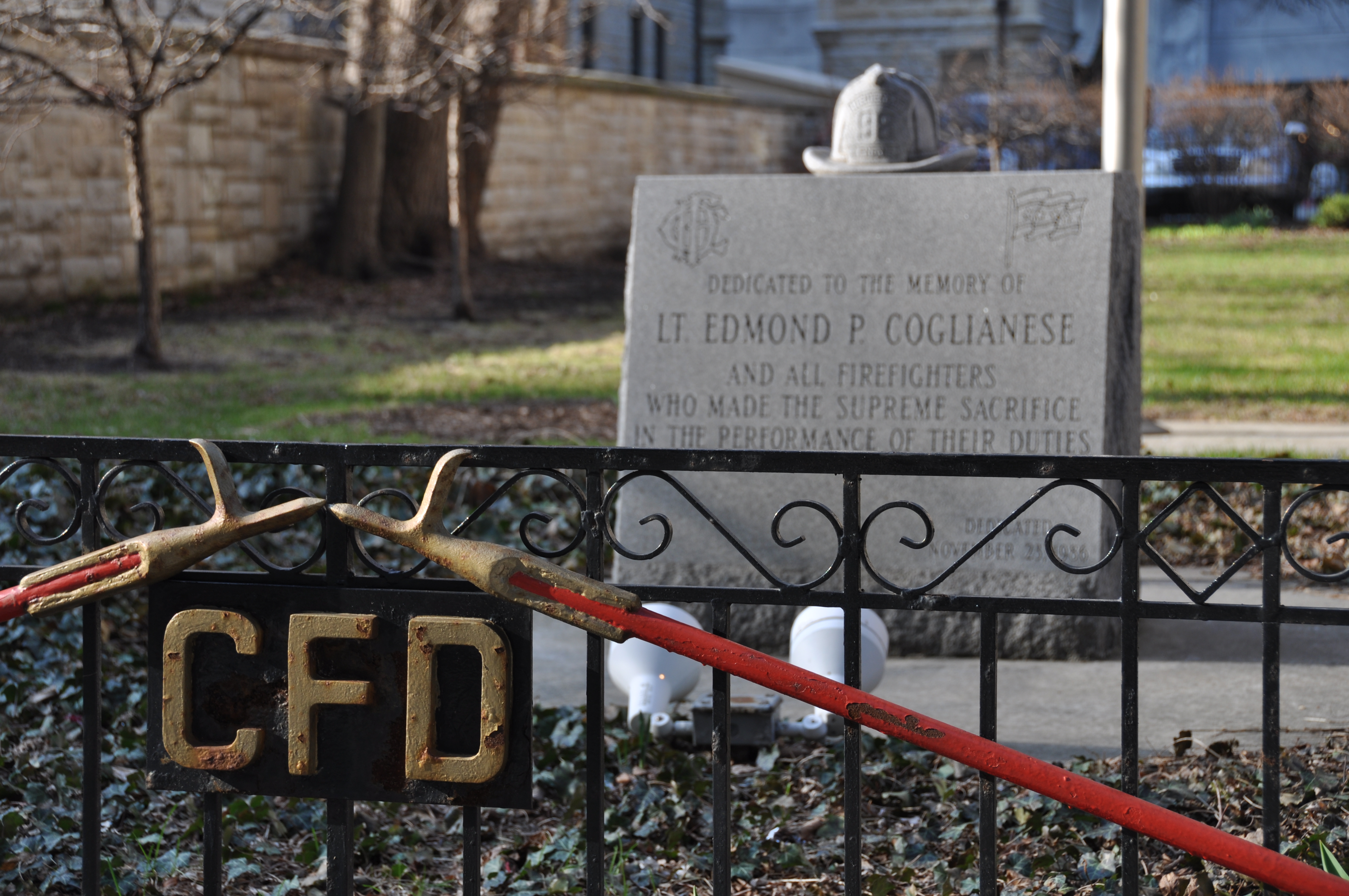 Remember those firefighters who make the supreme sacrafice in the performace of their duties. This photo was taken of a memorial to Lt Edmond P. Coglianese and is located outside of the Engine Co. 98 firehouse.