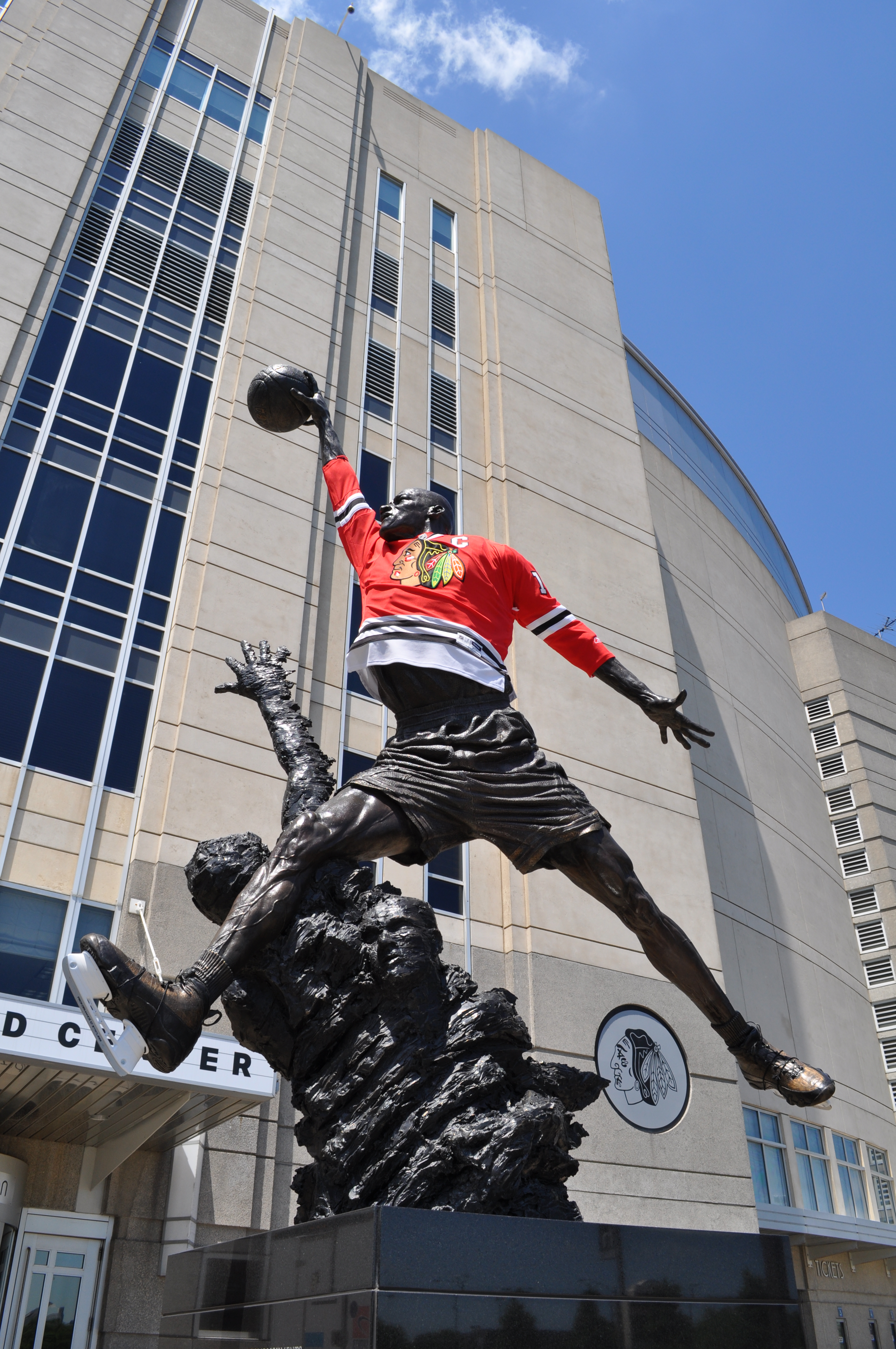 Again, looking back on things that were happening last year, here is a photo of the Michael Jordan statue outside of the United Center during the Stanley Cup playoffs of 2010. The statue was adorned with hockey skates and a Towes jersey to cheer on our beloved Blackhawks.