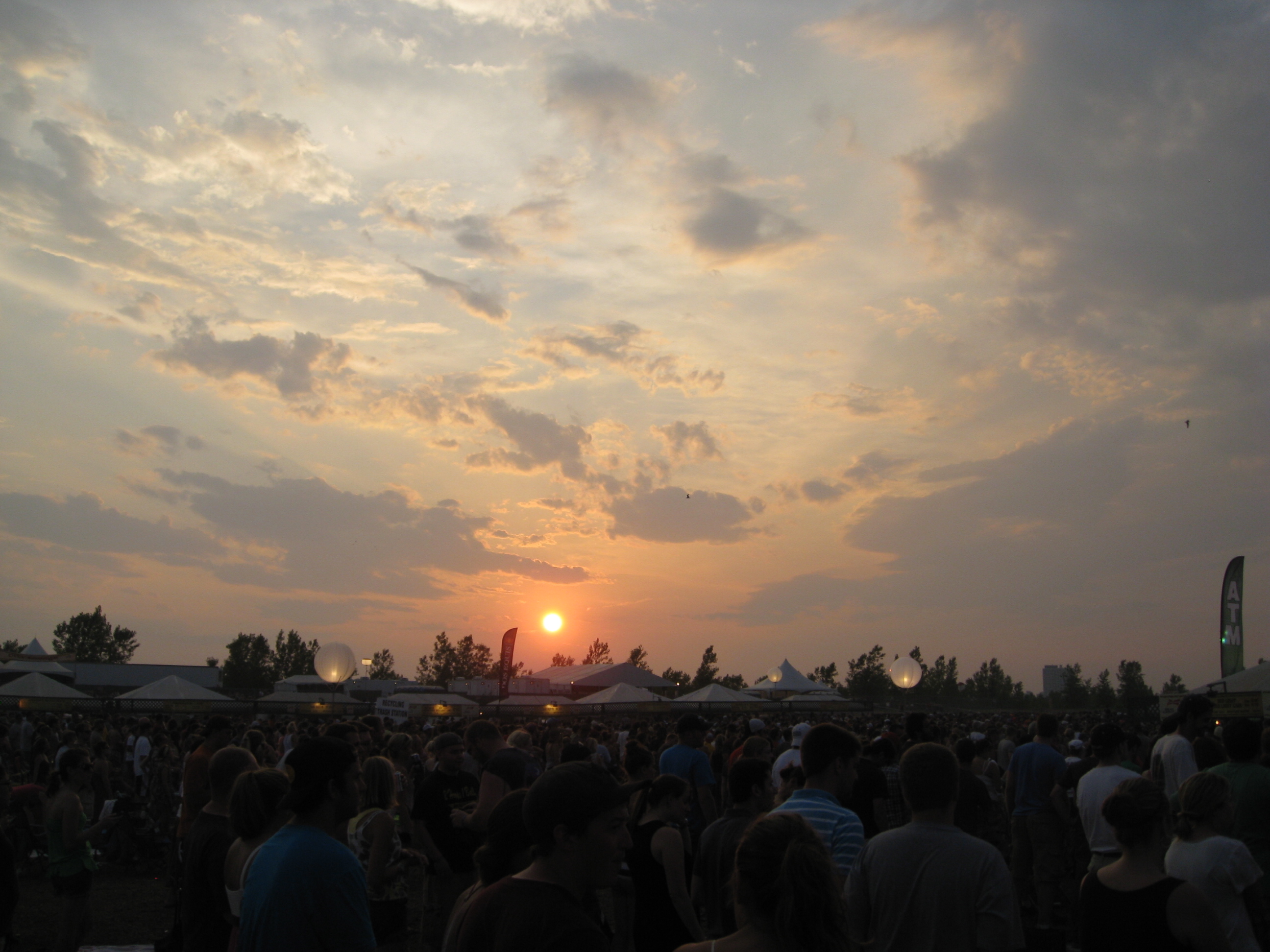 A beautiful sunset over the crowd at the final day of the DMB Caravan tour. The sunset is very deceiving as it set over a not-so-beautiful venue.