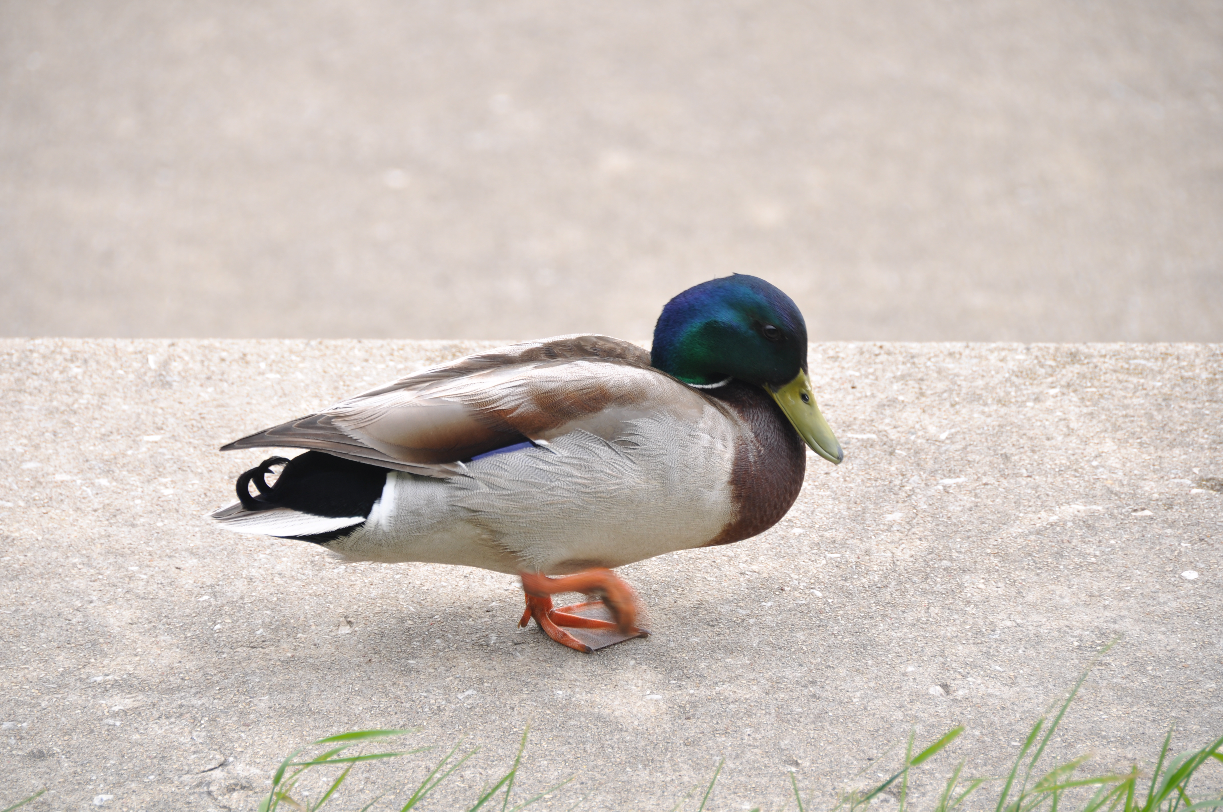A duck relaxes around the lakefront on a mid summers afternoon.