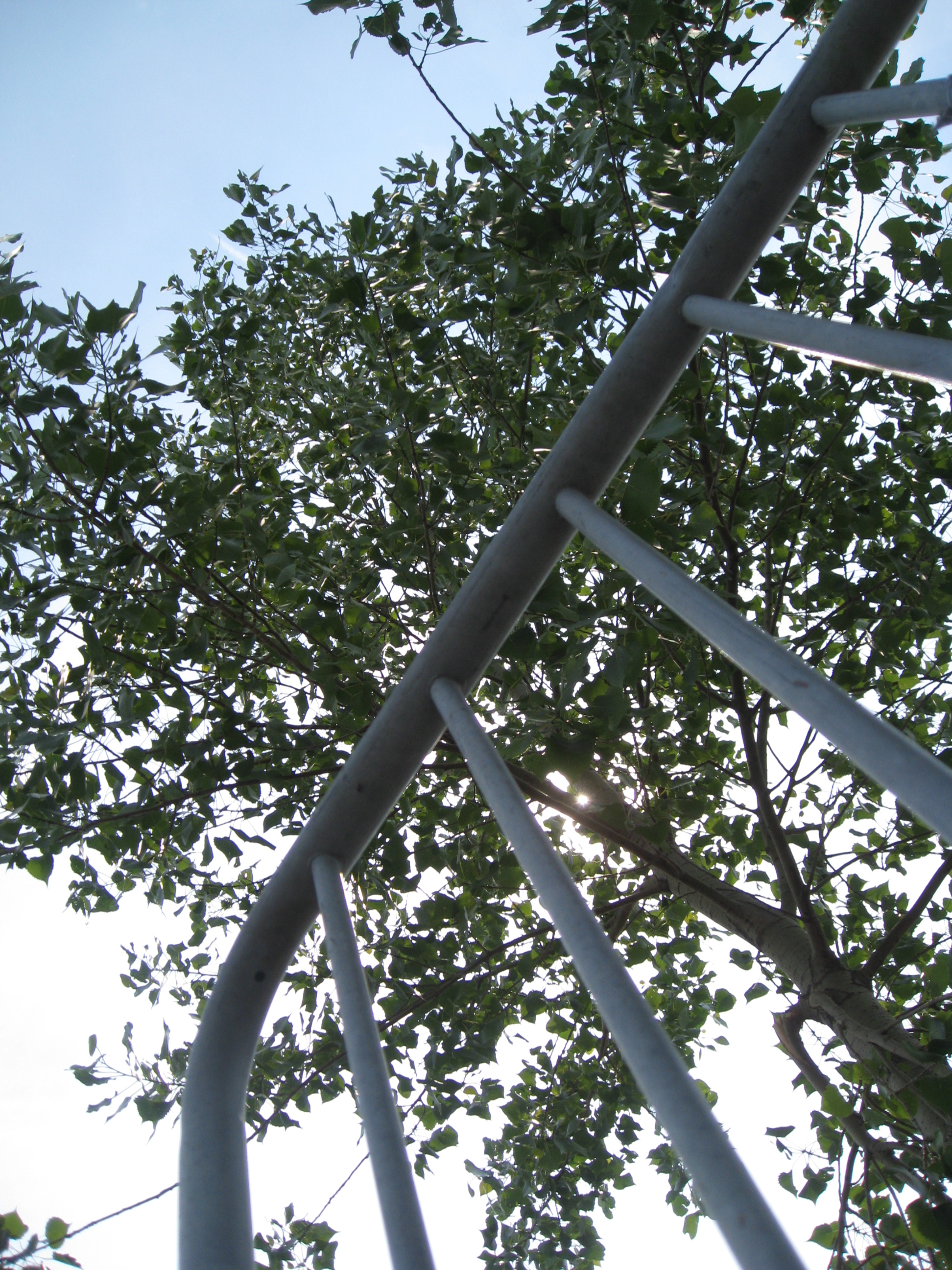 We were taking shelter from the sun at a concert and lying under on our backs under the tree and snapped a shot of the railing used to help with the crowd control. I thought that it was a cool shot so I decided to share.