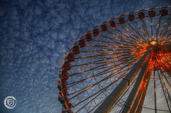 The ferris wheel at Navy Pier. With this done in HDR, the clouds really stand out.