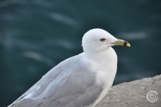 A seagull waits for a tourist to drop some food at Navy Pier.