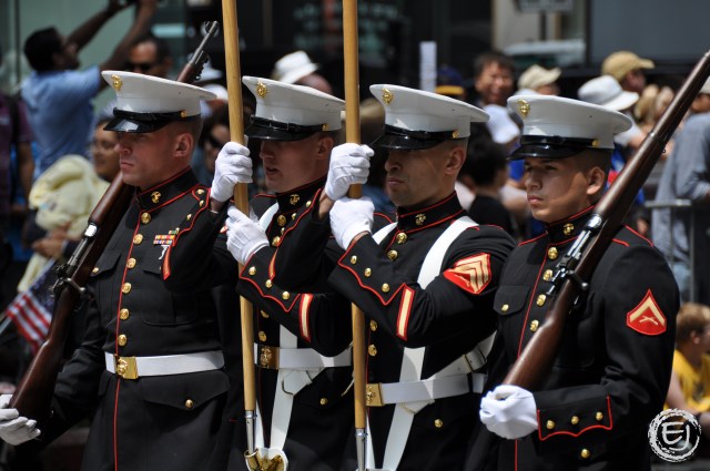 The U.S. Marines leading the start of the 2012 Chicago Memorial Day Parade.