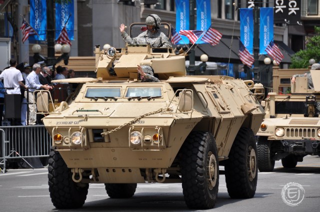 This Armored Personnel Carried was one of the many service vehicles that participated in the parade on State Street.