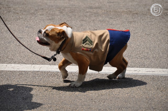 One U.S. Marine steps out of the parade march to give high fives to the children who were watching the parade.